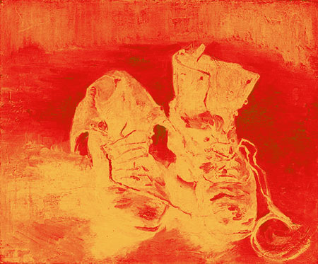 Jacques Derrida - "La vérité en peinture", Ed : Flammarion, 1978, p297 Les Vieux Souliers de Van Gogh colorises en rouge et or - |
