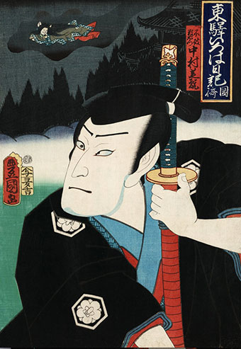 Nakamura Shikan IV dans le rôle de Fuwa Kazuemon (Kunishada, 1860). |